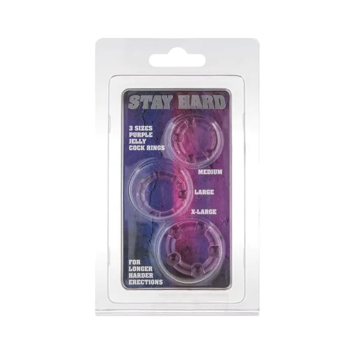 Questo kit di tre anelli in silicone in un seducente tono viola è la chiave per potenziare le tue prestazioni e prolungare il piacere. Ogni anello, di diverse dimensioni (21 mm, 23 mm e 24 mm), si adatta comodamente al tuo pene, permettendoti di mantenere un'erezione ferma e duratura. Addio alle preoccupazioni e lasciati trasportare dal piacere senza limiti!