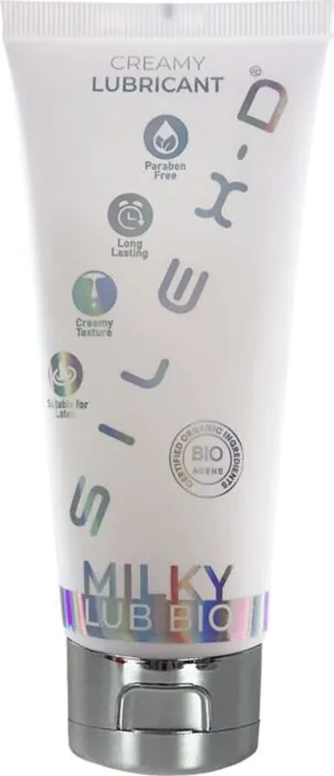 SILEXD Milky Lub Bio è un lubrificante cremoso che imita la consistenza del seme per rendere le esperienze sessuali più realistiche. Geeignete per fantasie e compatibile con giocattoli.