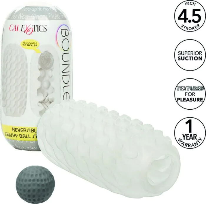 Piacere personalizzato e sensazioni intense con il Boundless Stroker di CALEXOTICS. Questo masturbatore premium offre un design morbido, elastico e una palla squishy removibile per una stimolazione su misura. Con due texture uniche, il suo design acanalato esalta ogni movimento, garantendo una suzione superiore per un'esperienza coinvolgente.