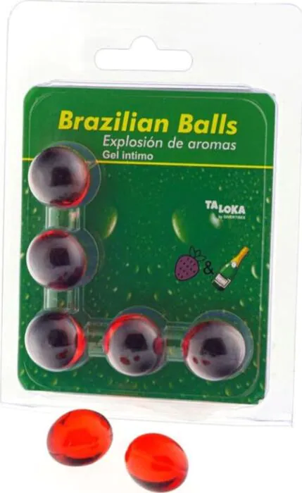 Cinque palline brasiliane al profumo di fragole e champagne, ideali per massaggi intimi. Rilascia un lubrificante che stimola i sensi.