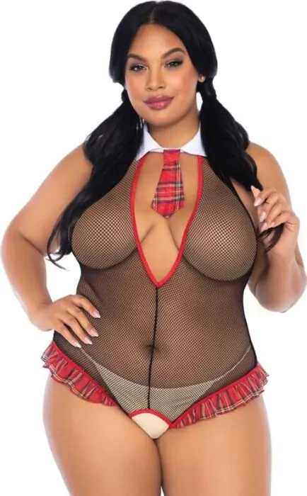 Rinforza la tua femminilità con questo teddy collegiale in rete. Consigliato per chi ama un tocco di seduzione e comfort in un solo pezzo.