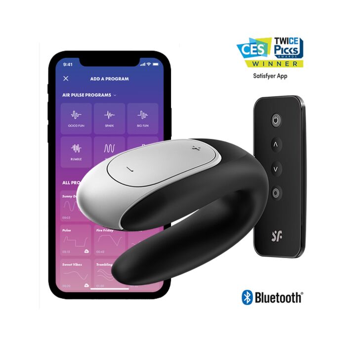 Ha anche un controllo intuitivo: I diversi programmi di vibrazione possono essere controllati tramite i pulsanti sul vibratore per coppie, con il telecomando wireless incluso o tramite l'app Satisfyer Connect.