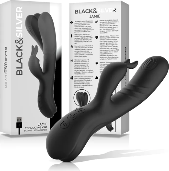 Il vibratore Rabbit Jamie di Black&Silver ti offre una stimolazione simultanea del clitoride e del punto G grazie a due motori potenti. Compatto e flessibile, è ideale per chi cerca un'esperienza intensa e soddisfacente.